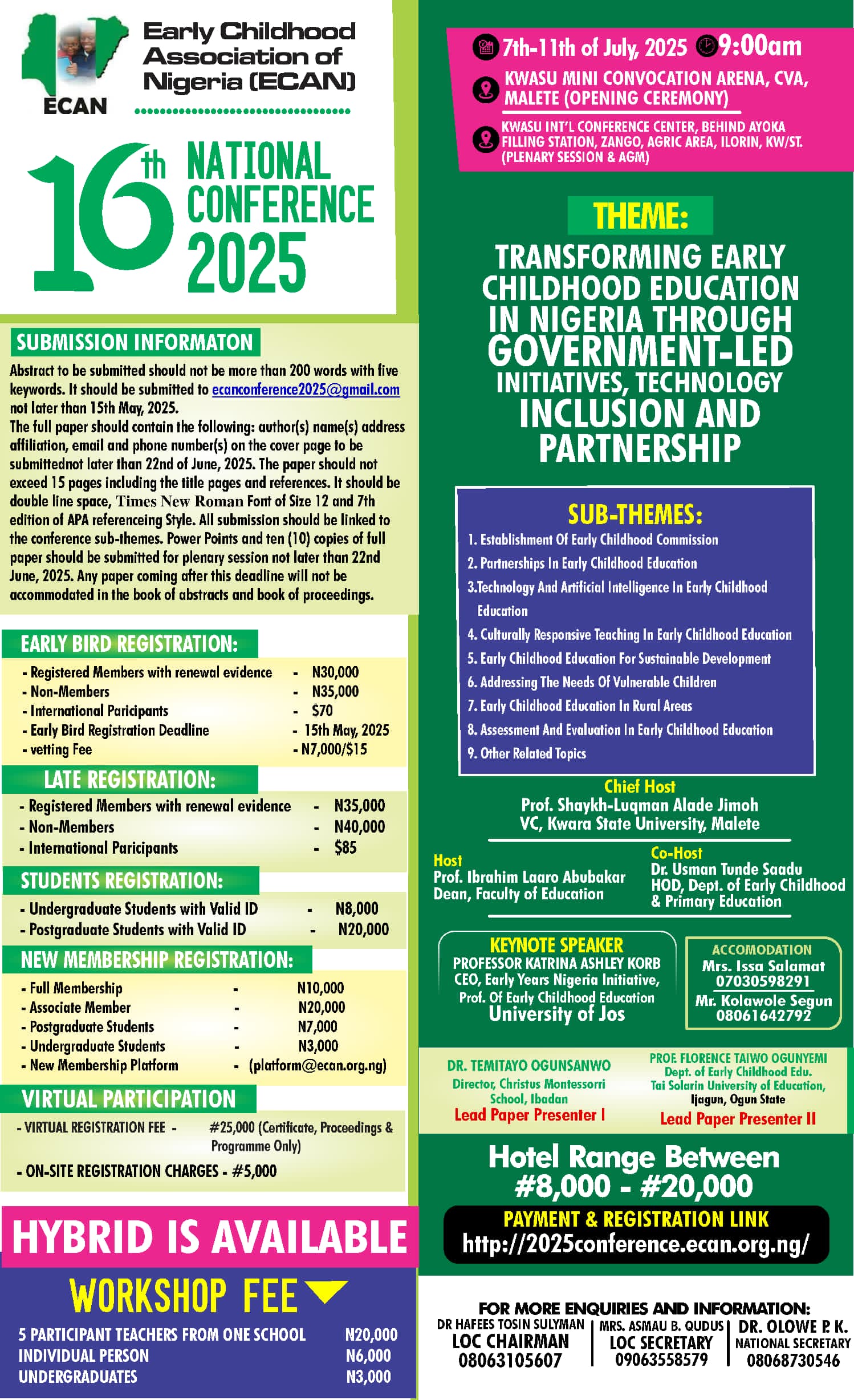 16th (2025) Annual National Conference: Transforming Early Childhood Education in Nigeria through Government-led Initiatives, Technology, Inclusion and Partnership