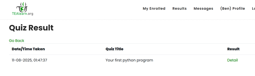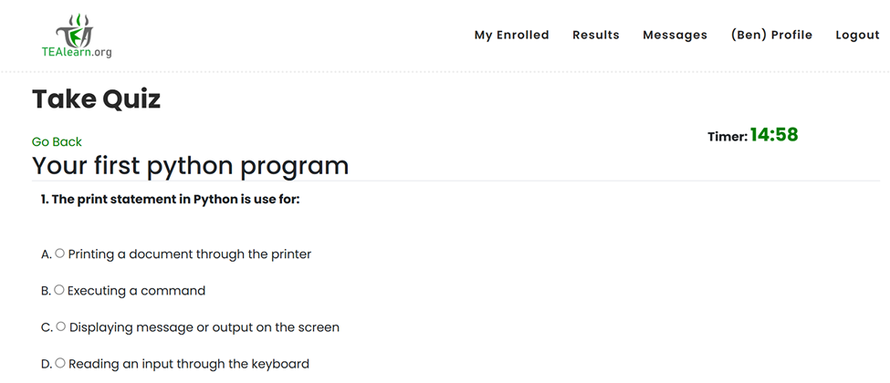 | 4. Timed Tests: Automatic countdown and submission when time runs out. |