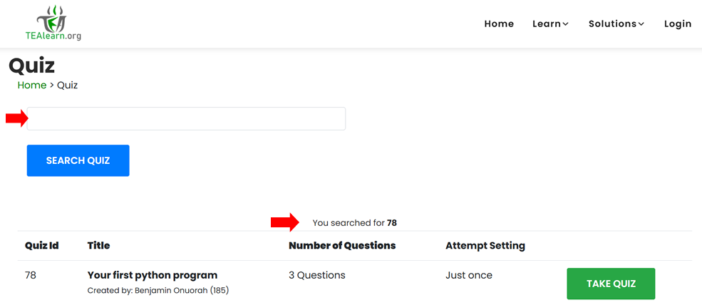 - They would see all quiz, they should enter the "Quiz Id" you gave them